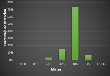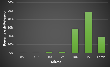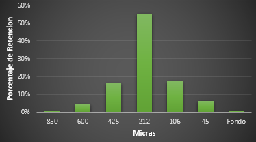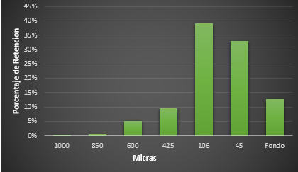 % Retención en tamiz: Es el porcentaje de retención de un número tamaño de tamiz usado (x).