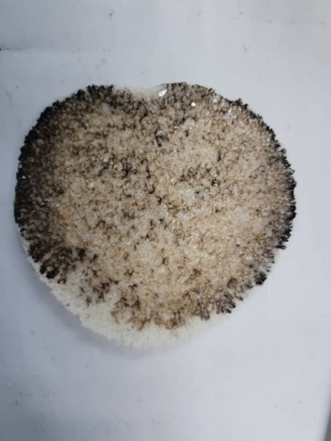 En la Figura 17 se observa una gran zona carbonizada que corresponde a la celulosa, la cual se descompuso a una temperatura inferior a su punto de fusión. Esto evidencia el efecto del HPMC sobre el PET, ya que al aumentar la proporción de HPMC se altera significativamente el punto de fusión de la misma. Estos hallazgos difieren de los obtenidos por Palomo y Llumiquinga [11], al emplear un equipo adecuado como una extrusora para homogeneizar la mezcla de polipropileno (PP) y el elastómero de nitrilo (EN), utilizando posteriormente una prensa hidráulica, para la obtención de tableros con distintas composiciones mediante moldeo por compresión, diferente a la mezcla empleada en el presente trabajo.